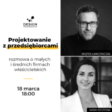 Czy zarządzanie designem i innowacją w firmach średnich, właścicielskich jest łatwiejsze czy trudniejsze do wdrożenia? Jakie widzimy pozytywy, a jakie bariery? Jaka jest różnica między pracą z przedsiębiorcą/przedsiębiorstwem a pracą w korporacji? Dlaczego powinniśmy wspierać przedsiębiorców jako projektanci? Kasia Szczesna oraz jej zespół z Design Mentorship – podstawy, zmiana pracy, rozwój, mentoring zaprosili Wojtka do rozmowy w ramach tygodnia edukacyjnego.